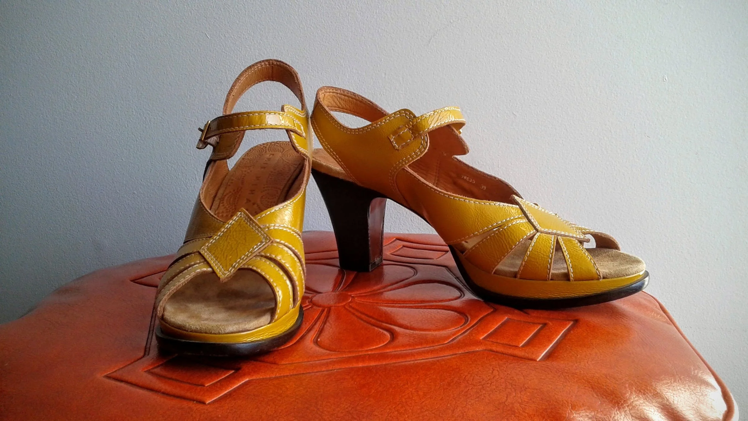 First off, let's say farewell to summer with these fabulous yellow sandals. This is the kind of shoe that you buy now, and stare at lovingly all winter long while waiting for spring to come again!