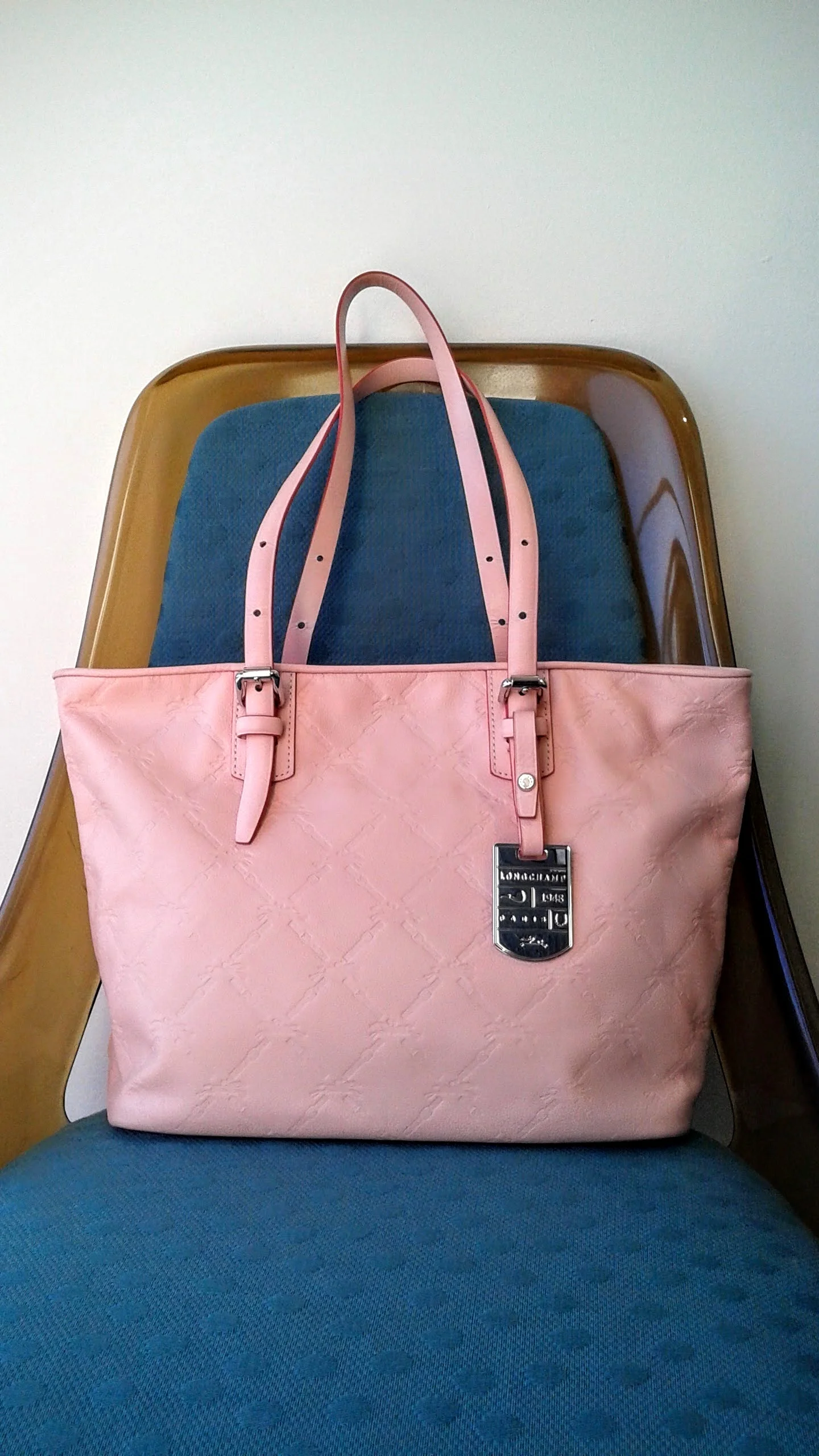 The pink leather is embossed with the Longchamps logo. I'll just say it myself: this hand-bag is a score!