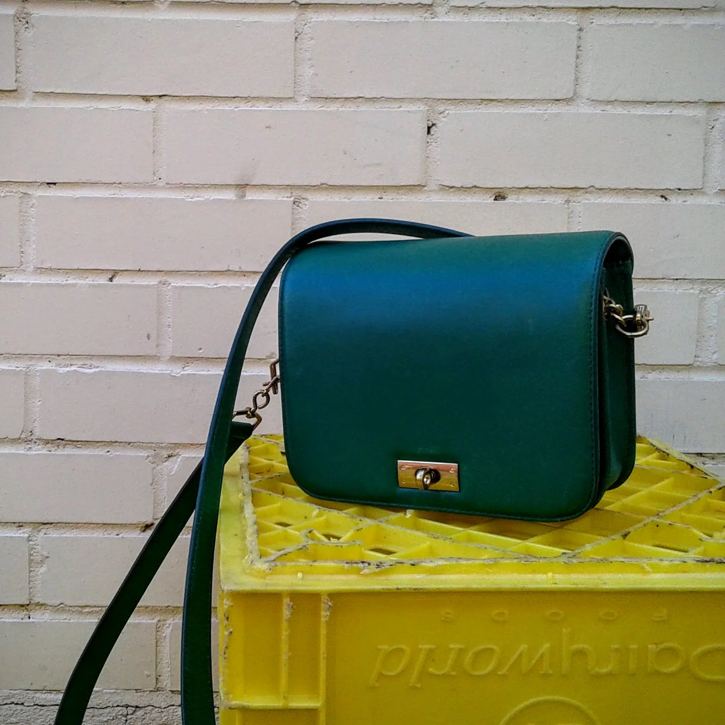 Weeeeeeeeeeee! This little green box purse is adorable! It reminds me of that little yellow Fossil purse we had in the shop last spring! (And just like the yellow purse, my huge mom-wallet does not fit into this green purse either. Boo).