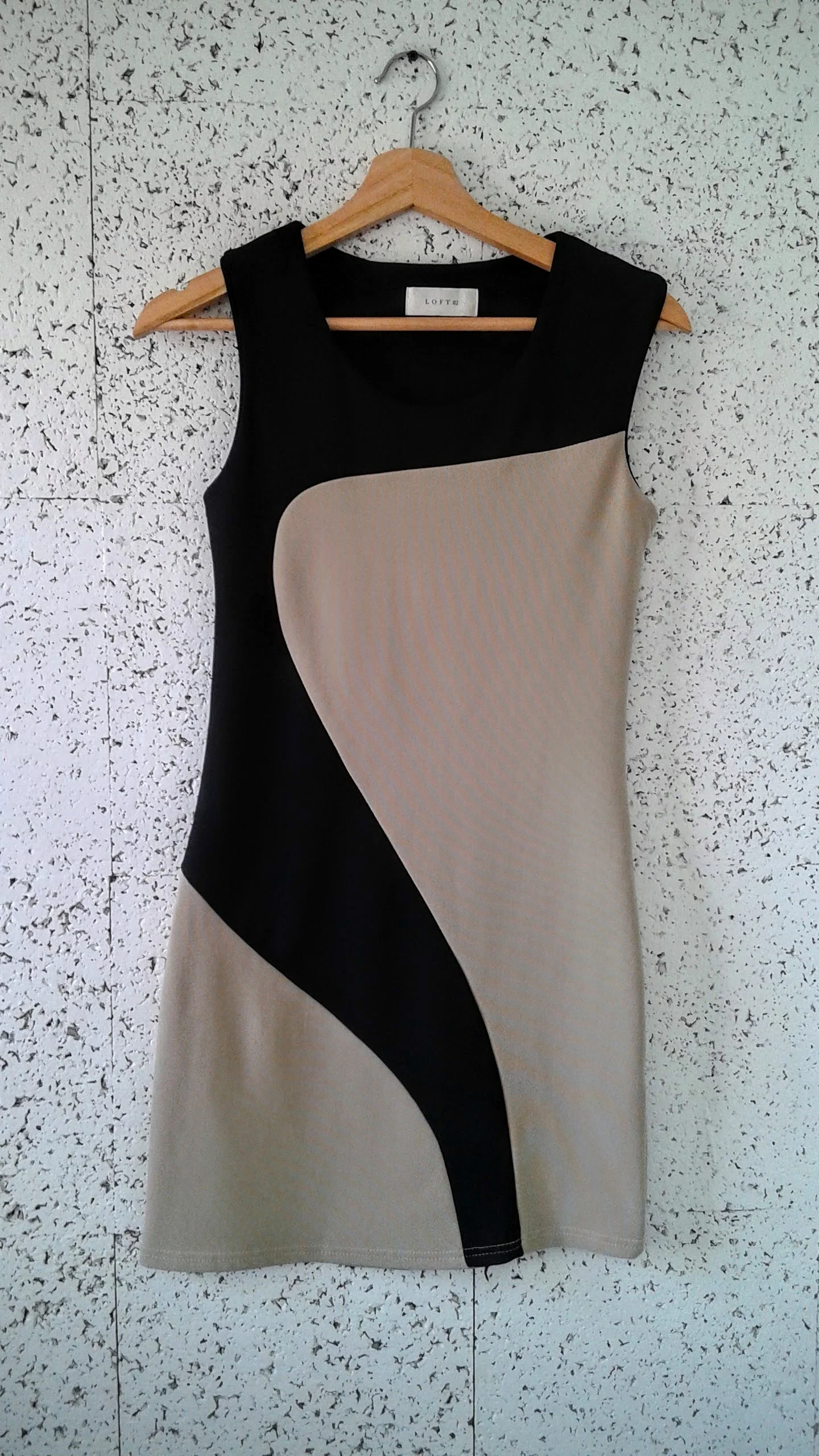 I tried on this structured dress from Oak+Fort for you; the silhouette is very modern, but the most interesting thing about this garment is the front seaming which make the dress look a bit like a very fashion-forward lab-coat. Laura (who takes the great pics for our Instagram) said it even looked good with the white converse I was wearing, so there is lots that you can do with this distinctive dress!